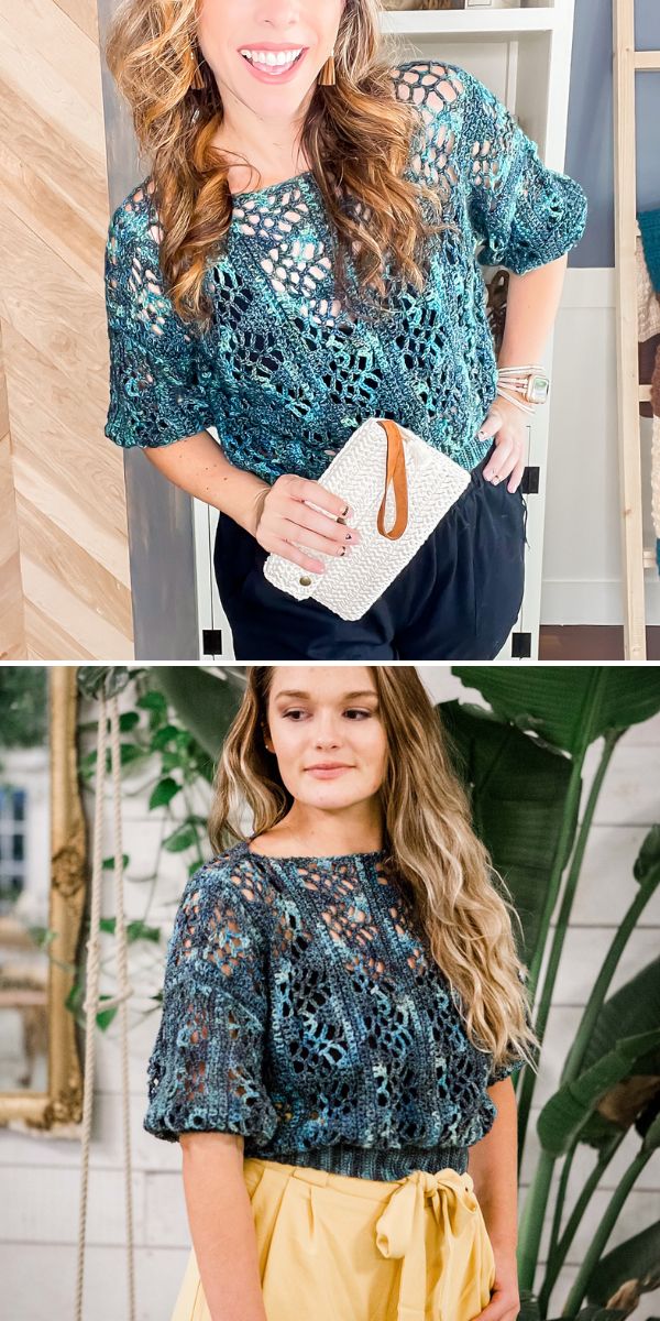 You can play with the colors of this cute short-sleeve in order to choose something that suits your needs and your amazing fashion taste. This piece can be an everyday basic as well as your favorite party top. It all depends on the yarn you use!