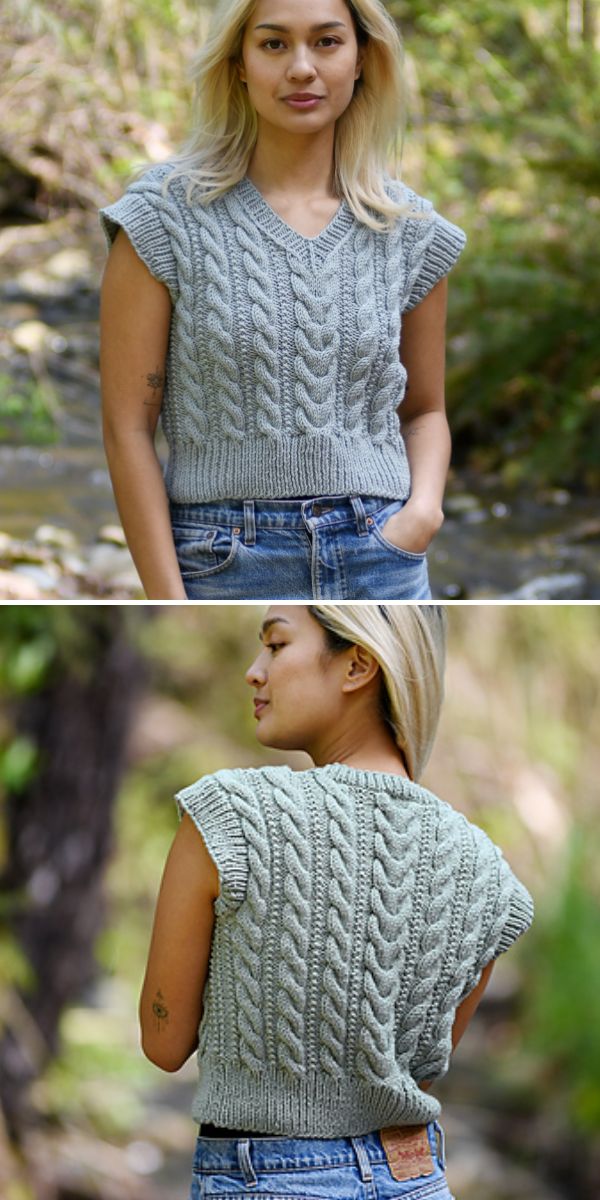 These vests will pair beautifully with jeans or romantic dresses. They will come in handy all year round – whether you prefer wearing them on top of shirts or with nothing underneath. Check out free knitting patterns under the links below.